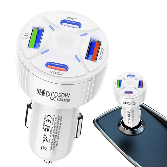 Car Adapter Fast Charger Station Multi Port Type-C x 2 + USB x 3 12V Universal